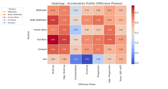 تحلیل ما در لالیگا نشان داده است که تفاوت‌های شتاب بین پست‌های مختلف، تصادفی نیستند بلکه از الگوهای تاکتیکی مشخصی پیروی می‌کنند. برای ارزیابی صحیح شتاب بازیکنان، باید زمینه بازی و فازهایی که پست آن بازیکن نیازمند انفجار حرکتی بیشتری است در نظر گرفته شود.